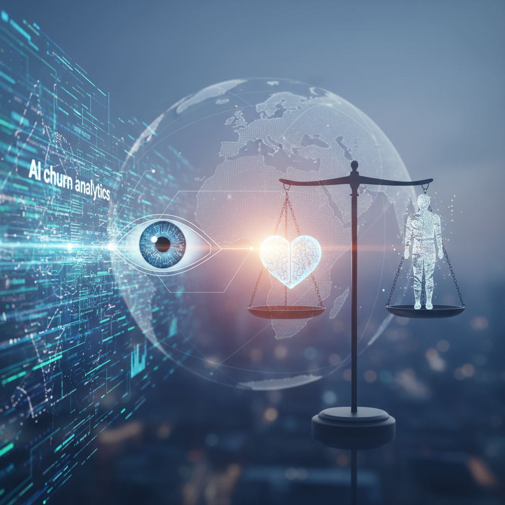 AI-driven customer churn analytics visualizing hidden churn risks in customer data for business leaders.