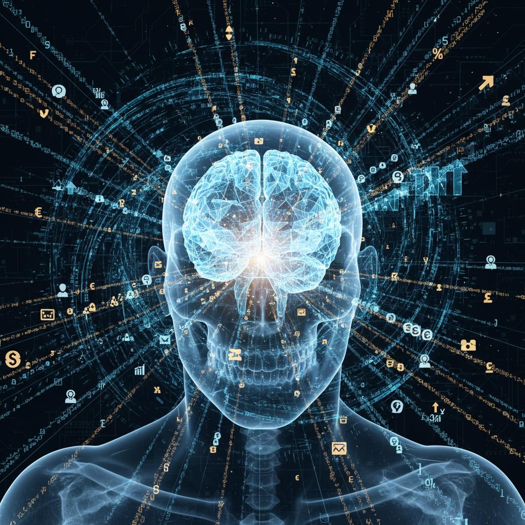 Digital brain visualizing risk data flows in AI-driven enterprise risk analytics.