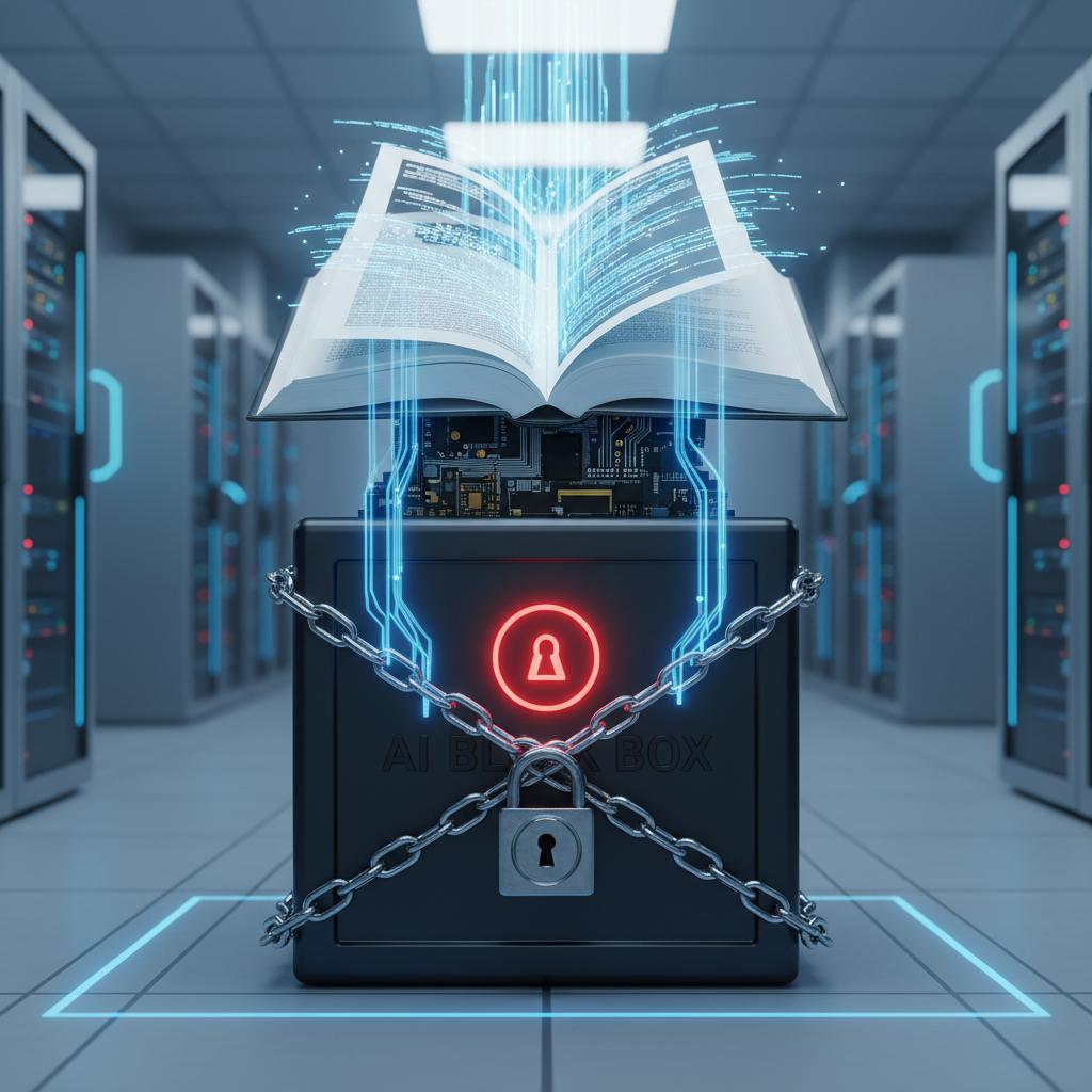 Alt text: Open-source codebook and locked black box representing AI transparency in sales analytics
