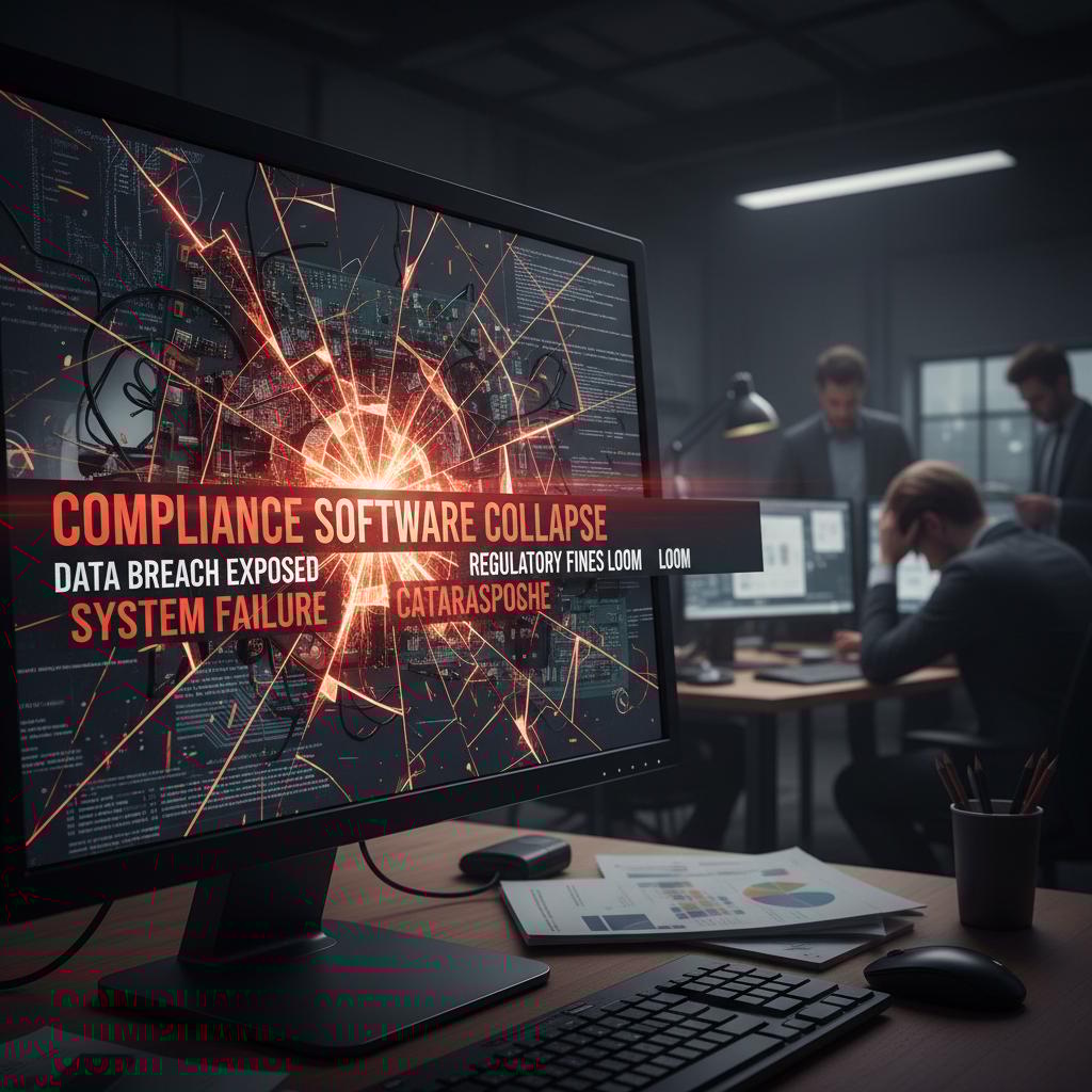 Montage of news headlines highlighting major compliance software errors in 2023-2024.