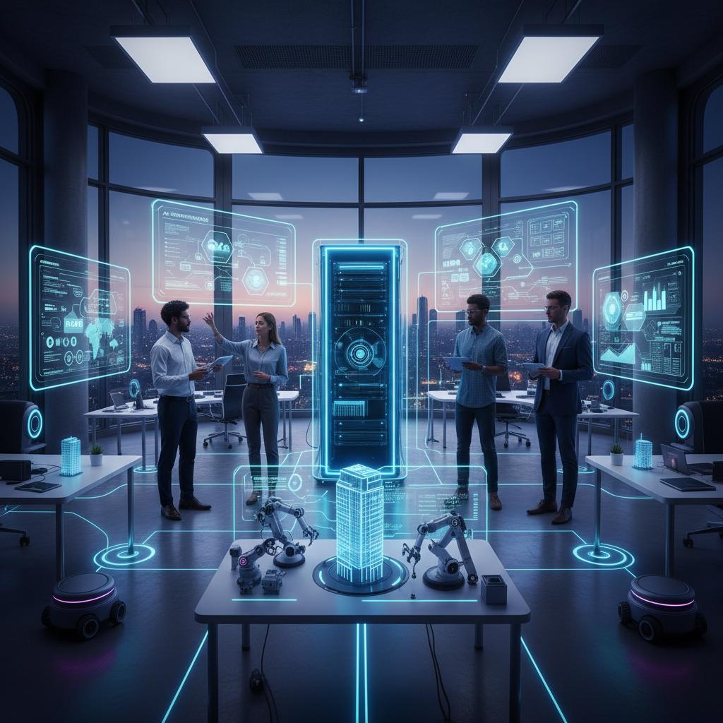 Alt: Future trends in workflow automation, AI-powered workflow connecting smart office devices, operational workflow automation software
