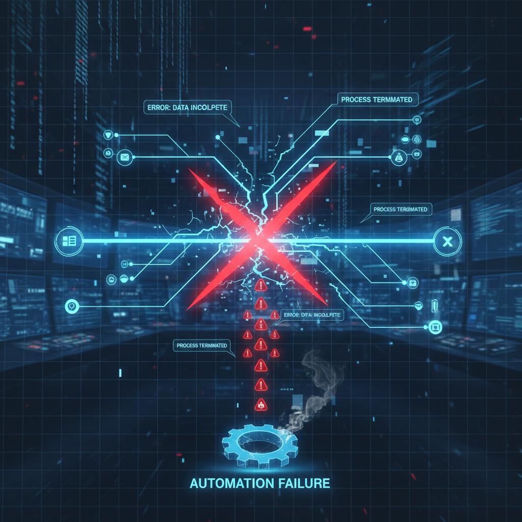 Alt: Common workflow automation failure point, digital workflow graph showing a broken link in operational workflow automation software