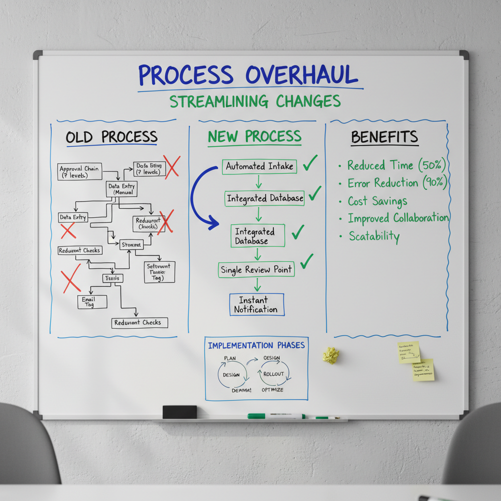 | Streamlining | Yes | Optional | High | Mapping and cutting redundant approvals in workflow |